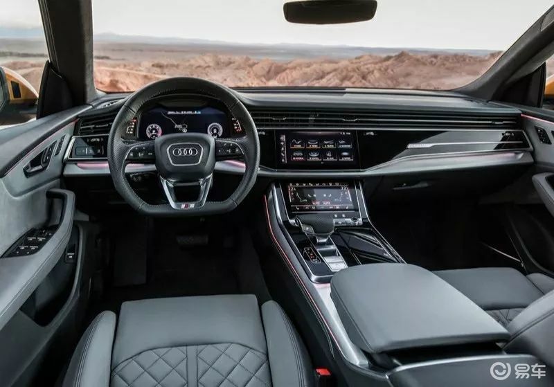 As a model in the Q series,The Audi Q8 adopts a four-door coupe SUV design languageThe exaggerated front face design, while retaining the large mouth air intake grille, adds more movement, making the whole full of three-dimensional sense.
